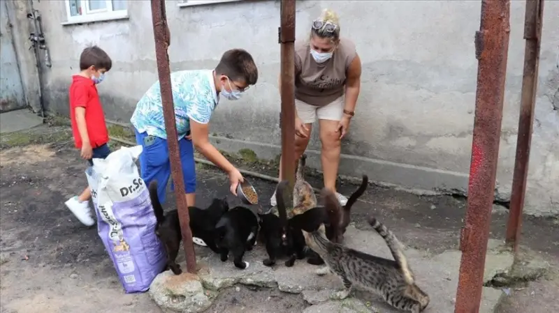 Dilşah ve Cumhur çiftinin çocukları Duhan Durmuş, evlerinde besledikleri 2 kedi ve köpeğin yanı sıra sokak hayvanlarına da yardım etme isteğini ailesine iletti.
