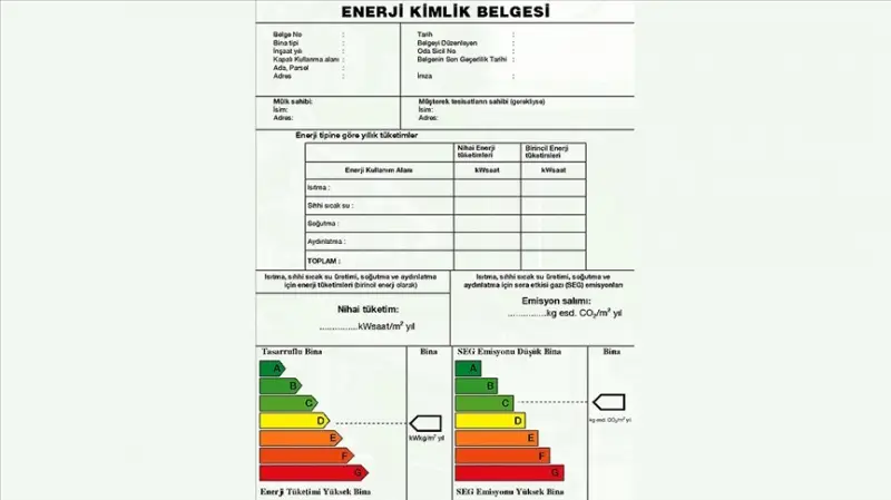 AA muhabirinin Çevre ve Şehircilik Bakanlığından aldığı bilgiye göre, Enerji Kimlik Belgesi, binanın enerji ihtiyacı ve enerji tüketim sınıflandırması, yalıtım özellikleri ve ısıtma veya soğutma sistemlerinin verimiyle ilgili bilgileri içeriyor.