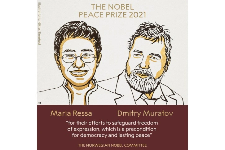 2021 Nobel Barış Ödülü sahiplerini buldu. 2021 yılının barış ödülü Filipinler ve Rusya'da ifade özgürlüğüne yönelik verdikleri "cesur" mücadele nedeniyle Maria Ressa ve Dmitry Muratov'a verildi. Ressa ve Muratov, “demokrasi ve kalıcı barışın ön koşulu olan ifade özgürlüğünü koruma çabalarından dolayı” ödüle layık görüldü. Oslo'da bulunan Norveç Nobel Komitesi tarafından yapılan açıklamada, “Ressa ve Muratov, demokrasi ve basın özgürlüğünün giderek daha olumsuz koşullarla karşı karşıya kaldığı bir dünyada bu ideali savunan tüm gazetecilerin temsilcileridir” ifadeleri yer aldı.