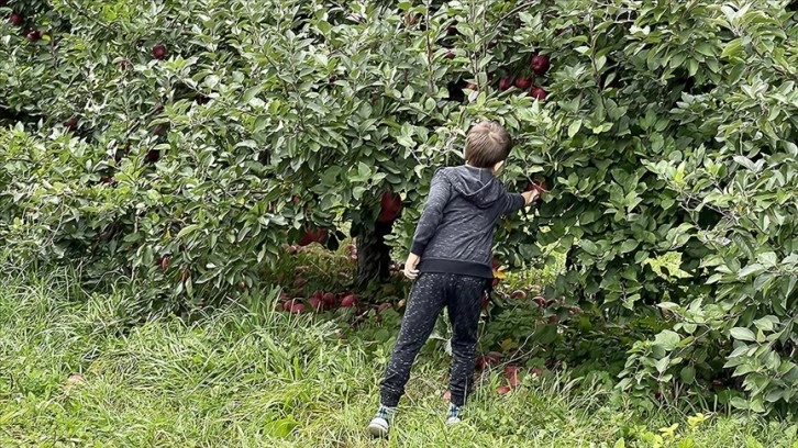 Sekiz çeşit elma ağacının bulunduğu dev çiftlik arazisinde insanlar, hem doğa ile buluşarak güzel vakit geçiriyor hem de yiyecekleri elmaları dallarından kendi elleriyle toplayarak eğleniyor.