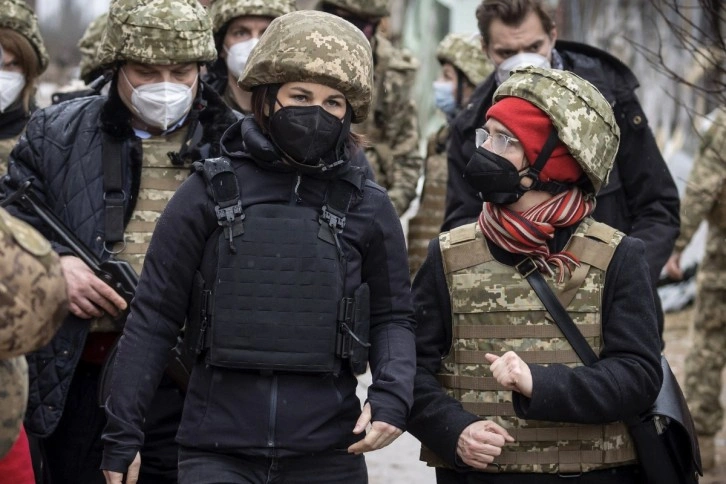 İki günlük resmi ziyaret kapsamında dün Ukrayna'ya gelen Almanya Dışişleri Bakanı Annalena Baerbock, ülkenin doğusundaki Donbass bölgesini ziyaret etti. Miğfer ve kurşun geçirmez yelek giyen Bakan Baerbock, bölgede incelemelerde bulunurken, Ukraynalı askerler tarafından korundu.