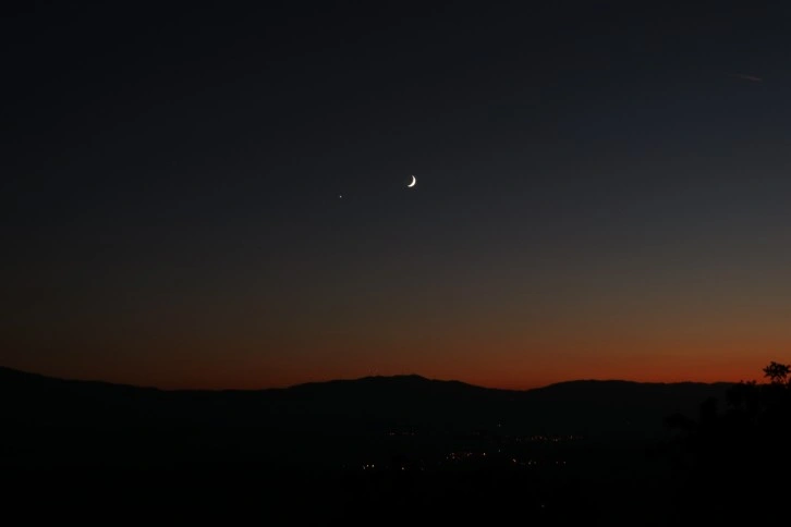 Amasya'nın Taşova ilçesinde akşam saatlerinde gökyüzünü süsleyen ay ile yıldız, görenlerin dikkatini çekti.