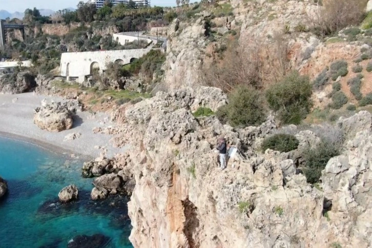 Antalya’da 30 metrelik falezlerin ucunda tehlikeli olta