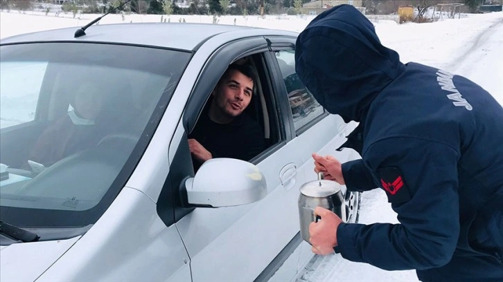 Araçlara zincir takıp, vatandaşlara çorba ve çeşitli gıdalar dağıtan jandarma personeli, sokak hayvanlarını da besledi.