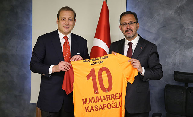 Burak Elmas, kabulün ardından Bakan Kasapoğlu'na adının yazılı olduğu 10 numaralı Galatasaray forması hediye etti.