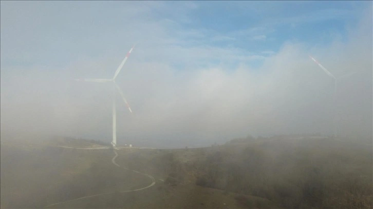 Deniz seviyesinden 1131 metre yükseklikte yer alan rüzgar güllerinin sisle yaptığı dans, drone ile görüntülendi.