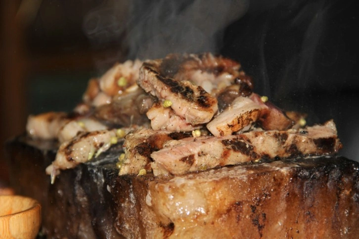 Kasap Mehmet Günbey, kaya tuzlarında dinlendirilen etleri pişirdikten sonra yine kaya tuzunda servis ettiklerini ifade ederek, 200 TL ila 8 bin TL arasında değişen porsiyon servislerinin olduğunu ifade etti.