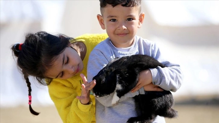 Depremzede aileler evlerinde besledikleri kedi, köpek, kuş ve tavşan gibi evcil hayvanları çadır kente getirdi.