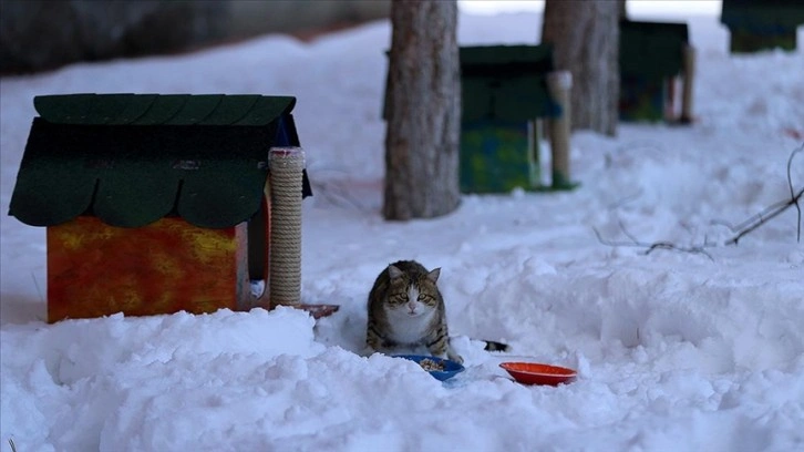 Kurum bahçesinde çeşitli noktalara yerleştirilen, içerisinde minder, önünde yemek kabı bulunan kedi evleri ile ağaçlara asılan kuş yuvaları, hayvanlara sıcak ortam sağladı.