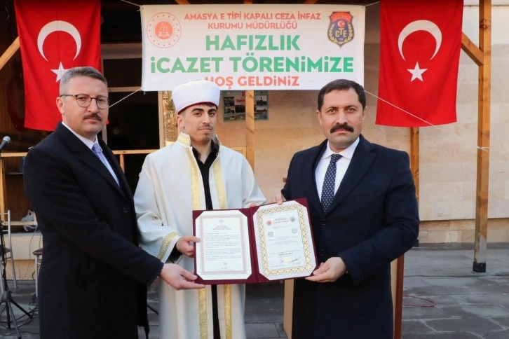 Saygı duruşu ve İstiklal Marşı'nın okunmasıyla başlayan törende Kur'an-ı Kerim tilaveti beğenilen genç hafıza cübbesini giydiren Amasya Müftüsü Durmuş Ayvaz, “Kaderin herhangi bir cilvesiyle beraber cezaevi gibi şartlarda hafız olmak büyük bir erdem ve başarıdır” şeklinde konuştu.