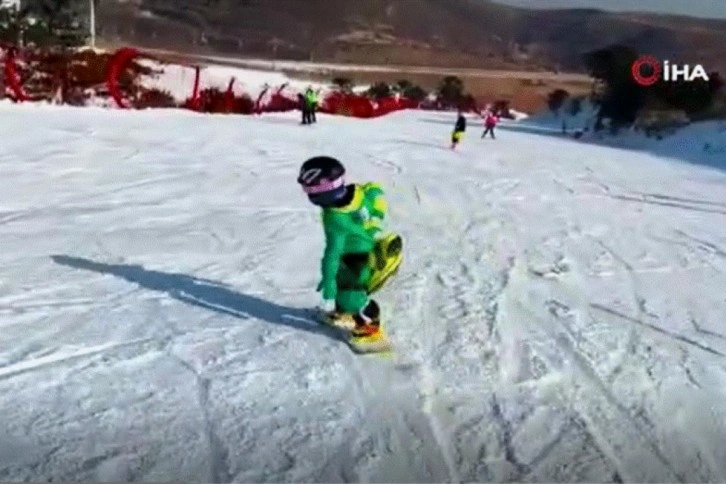 Ülkenin kuzeyindeki Hebei eyaletinin Shijiazhuang kentinde kayak yapan 3 yaşındaki Wang Xixi adlı kız çocuğunun snowboard gösterisi ise nefes kesti.