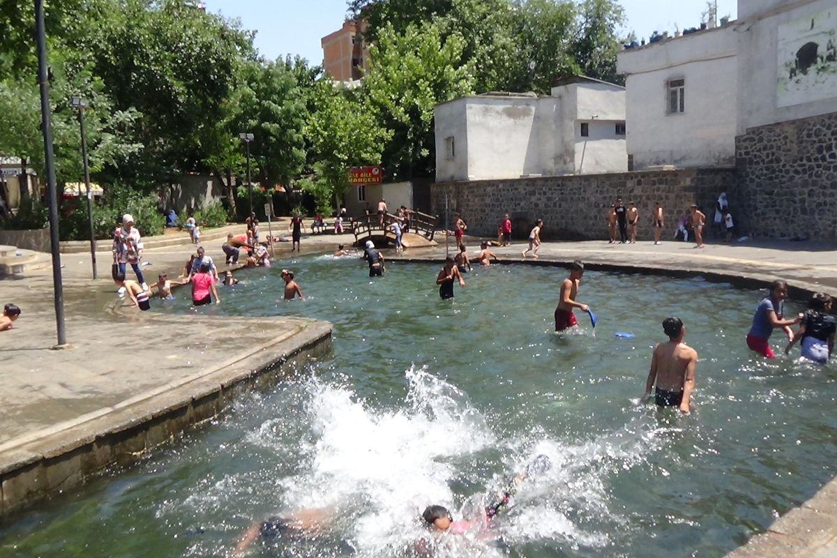 Diyarbakır'da hava sıcaklığı artınca bunalan çocuklar, Sur ilçesinde bulunan Anzele Parkı'nın süs havuzuna girdi. Tehlike tabelasına rağmen serinlemenin keyfini çıkaran çocuklar yüksekten atlayarak tehlikeye davetiye çıkardı. Çocuklardan Süleyman Toprak, belediyenin havuzu olmadığını ve diğer havuzların ise ücretli olduğundan dolayı süs havuzunda yüzdüklerini, Diyarbakır çok sıcak olduğundan dolayı serinlediklerini kaydetti.