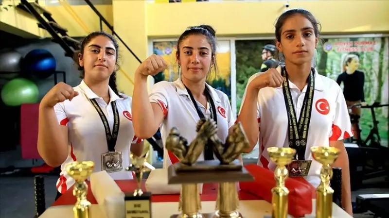 Dicle ilçesinde okulun ücretli beden öğretmeni sayesinde bilek güreşindeki yetenekleri keşfedilen Gülçin Altınay (19), Helin Tuna (17) ve Elanur Kazaylek (13), bu branşla ilgilenmeye başladı.