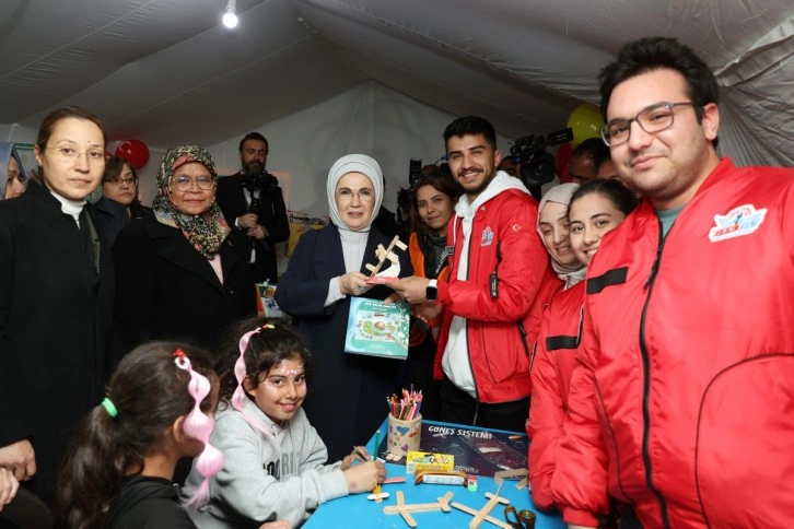 Depremlerde hayatını kaybedenlere Allah'tan rahmet, yakınlarına da başsağlığı dileyen Emine Erdoğan, "Çok zor günler geçiriyoruz. Bunları hep birlikte aşacağız. Birbirimizin elinden tutarak, birbirimize teselli olacağız. Rabbim bir daha buna benzer günleri bir daha yaşatmasın" diye konuştu.