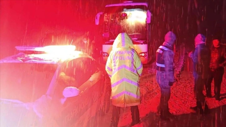 Otobüsteki arızayı gideremeyen şoför, polis ve jandarma ekiplerinden yardım istedi.