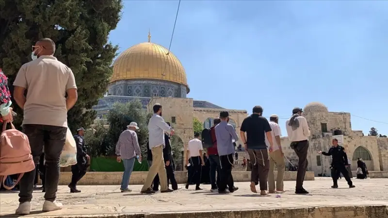 İsrail polisinin eşlik ettiği onlarca fanatik Yahudi, işgal altındaki Doğu Kudüs'ün Eski Şehir bölgesinde bulunan Mescid-i Aksa'nın avlusuna girdi.