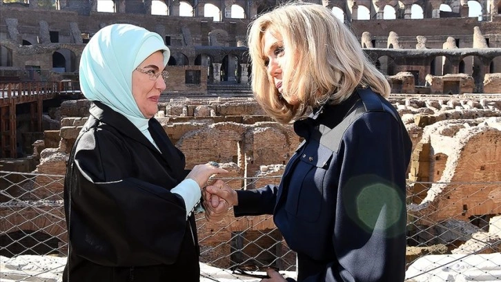 Emine Erdoğan, Roma'da ilk gün, zirvenin ev sahibi İtalya Başbakanı Mario Draghi'nin eşi Maria Serenella Cappello'nun ev sahipliğinde, Roma Kolezyum'da devlet başkanlarının eşleriyle bir araya gelerek, antik kenti ziyaret etti.