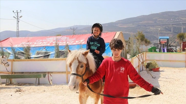 Bu kapsamda ilçedeki geçici barınma bölgesine kurulan ve atlı terapinin yapıldığı etkinlikle çocuklara depremin oluşturduğu olumsuzlukların aşılmasına katkı sağlanması amaçlanıyor.