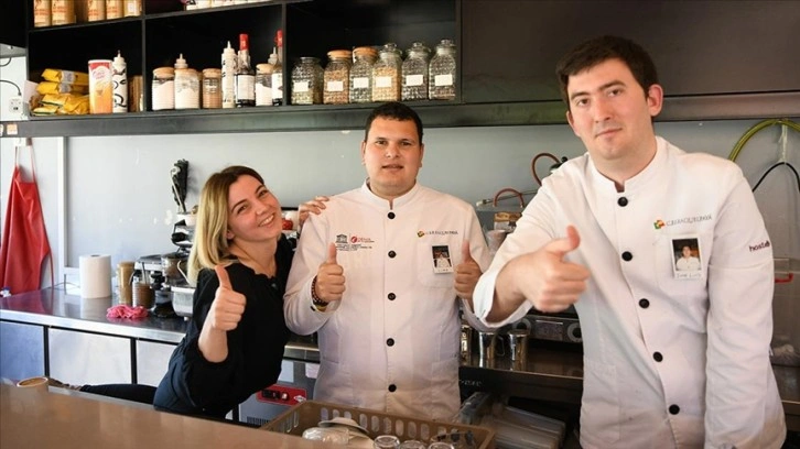 Kafede bir hafta boyunca müşterilerden sipariş alarak içecek hazırlayan ve servis yapan İspanyol gençler, Gaziantepli yaşıtlarıyla da eğitmenleri yardımıyla anlaşıyor.