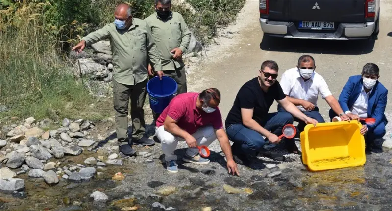 Gümüşhane'de Doğa Koruma ve Milli Parklar (DKMP) Şube Müdürlüğü ekiplerince bu yıl derelere 10 bin alabalık yavrusu bırakıldı.