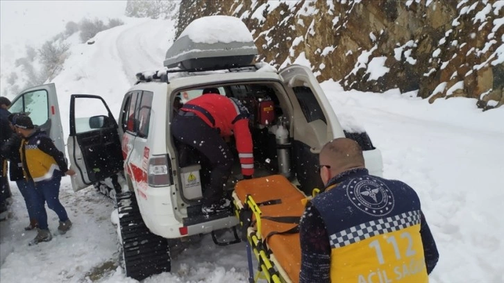 Bunun üzerine ambulansla köye gitmeye çalışan sağlık ekiplerinin kar, tipi ve sis nedeniyle ilerleyememesi üzerine bölgeye paletli ambulans ve UMKE aracı yönlendirildi.
