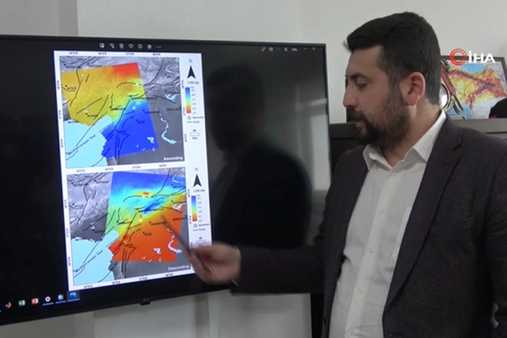 Zonguldak Bülent Ecevit Üniversitesi afet Uygulama ve Araştırma Merkezi ve Geomatik Mühendisliği Bölümü geçen 6 Şubat günü Kahramanmaraş ve çevresindeki 10 ili etkileyen 7.7 ve 7.6 büyüklüğündeki depremler sonrası SAR uydu görüntüleri aracılığıyla yüzeydeki hareketlenmeleri inceledi. Uydular vasıtasıyla metrik olarak hesaplanan verilere göre fay hattının üstte kalan kısmının güneybatı yönünde altta kalan kısmının ise kuzey doğu yönünde toplam 3,8 metre hareket ederek yer değiştirdiği tespit edildi.Uzaktan algılama tekniğiyle yapılan çalışmada yatay ve düşey hareketlerin net bir şekilde ortaya çıkartıldığını anlatan Zonguldak Bülent Ecevit Üniversitesi afet Uygulama ve Araştırma Merkezi ve Geomatik Mühendisliği Bölümü Öğretim Üyesi Doç. Dr. Çağlar Bayık, "Uzaktan algılama afet izleme ve tespit etme konusunda oldukça önemli bir teknolojidir. Uzaktan algılama teknolojisi pek çok veri sağlar bunlardan biri de radar uydu görüntüleridir. Uydular günün her saati ve atmosferden bağımsız her koşulda görüntü alabilmektedir. Bu uydular dünya yer kabuğuna 700-800 km mesafeden ölçümler yapmaktadır.SAR sistemlerinin kuzeyden güneye ve güneyden kuzeye yan bir uçuş yaptığı için yükselen ve alçalan uydu görüntülerinden analizler gerçekleştirdik. Depremden önceki ve sonraki görüntülerin faz ölçümlerini yaparak aralarındaki uzaklık değişimini elde ettik. Depremdeki etkileri şöyle söyleyebiliriz, (Kahramanmaraş- Gaziantep arasını işaret ederek) sıcaktan soğuğa geçiş çizgisi belirmekte. Burada fayın kırılma çizgisi olarak belirledik. Yaklaşık olarak 3.8- 4 metre civarında bir yeryüzeyi değiştirmesi olduğunu söyleyebiliriz. Sol yanal atımlı bir fay olduğu için kuzey bölümlerinin güneybatıya, fayın altında kalan bölgelerin ise kuzeydoğu yönünde hareket ettiğini görmekteyiz. İkinci depremde, farklı desen ve renkler görünmekte. İkinci depremin bize verdiği yer değiştirme miktarı 3 ila 3.5 metre arasında değişmekte. Fay hattının üstte kalan kısmı güneybatıya doğru, altta kalan kısım ise tam tersi hareket ediyor.Tam rakamları vermek gerekirse fayın altında kalan (Hatay, Kilis, Gaziantep, Adıyaman illerini kapsayan bölge) bölgede 2.7 metre kuzeydoğuya hareket varken, fayın üstünde kalan bölgede 1.1 metre güneybatıya bir hareket var. 3.8, hatalarla birlikte 4 metreyi bulduğunu söyleyebiliriz. Altta kalan kısım daha fazla hareket etmiş. Gaziantep ve Kilis'te olan genel tabaka kuzeydoğuya hareket etmiş ama Malatya, Kahramanmaraş ve Osmaniye güneybatıya doğru hareketini gerçekleştiriyor. Arap levhası, Van-Diyarbakır üzerine bir hareket yapıyor. Kahramanmaraş ile Gaziantep arasında birbirinden uzaklaşma var" dedi."Depremden en fazla etkilenen alan Hatay bölgesi"Hatay'ın zemin yapısı sebebiyle depremden en çok etkilenen alan olduğuna vurgu yapan Bayık, "Renklerden görüldüğü gibi en fazla etkilenen alan Hatay bölgesi olmuştur. Bu da zemin yapısıyla ilgili bir durum. Fayın kuzeyinde kalan illere genel olarak baktığımızda Osmaniye Kahraman Maraş ve Adıyaman'ın güneybatıya yaptığı hareket çok bariz belli. Diğer iller de kuzeybatıya hareket ediyor. Bu tür fayların özelliği yatay hareketlerin fazla olması ama düşey hareketler de olabiliyor. Fayın bir bıçak gibi kestiğini düşünürsek üst tarafta kalan kısımlar bir buçuk 2 metre arası yükselme gösterirken Antep ve Kilis tarafı da yarım metre yükselme göstermiştir. Yani aralarında 1 metreye yakın düşeyde bir fark ortaya çıkmıştır" ifadelerine yer verdi.