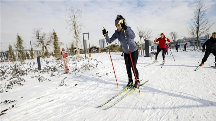Yaz aylarında farklı alanlarda spor yapabilmeyi kolaylaştıran Başkent Millet Bahçesi, kar yağışının ardından kış sporlarını sevenler için de antrenman ve eğlence alanına dönüştü.