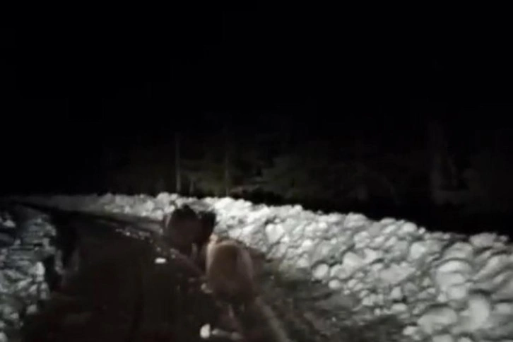 Karabük'ün Tabiat Parkı olan Baklabostan mevkiinde gece saatlerinde kent merkezine giden aracın önüne, bir anda iki ayı çıktı. Kış uykusuna yatması gerekirken, yiyecek aramaya çıkan iki ayıyı bir anda karşılarında gören açtaki vatandaşlar o anları cep telefonlarının kamerasıyla kayda aldı. Yol kenarındaki kar yığınlarının arasından uzun süre araç önünde koşan ayılar daha sonra gecenin karanlığından ormanlık alana girerek gözden kayboldu.