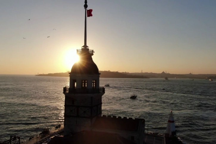 Üsküdar'da gün batımında oluşan eşsiz manzarada, Kız Kulesi ile batmakta olan güneş birleşti. Güneşin batışıyla oluşan eşsiz manzara objektiflere böyle yansıdı. Kızıla bürünen gökyüzü ve Kız Kulesi'nin birleşmesinin etkisiyle kartpostallık görüntüler oluştu. Gökyüzünün yansımasıyla boğazın suları kızıla büründü. Havadan çekilen gün batımı görüntüleri, izleyenleri kendine hayran bıraktı.