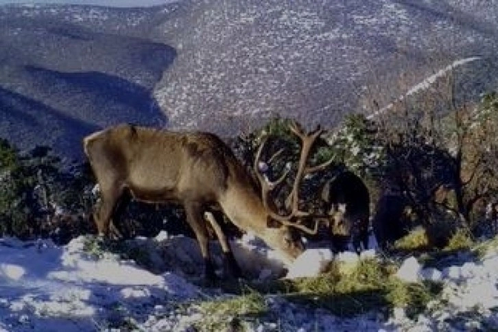 Belgeseli aratmayan görüntülerde kızıl geyiklerin dağın farklı bölgelerinden gelerek bırakılan yemleri yemeleri sanayi saniye kayıt altına alındı. Kar yağışı ile birlikte soğuk havalanın etkili olduğu bölgelerde yemleme çalışmasında birçok ekip görev aldı.