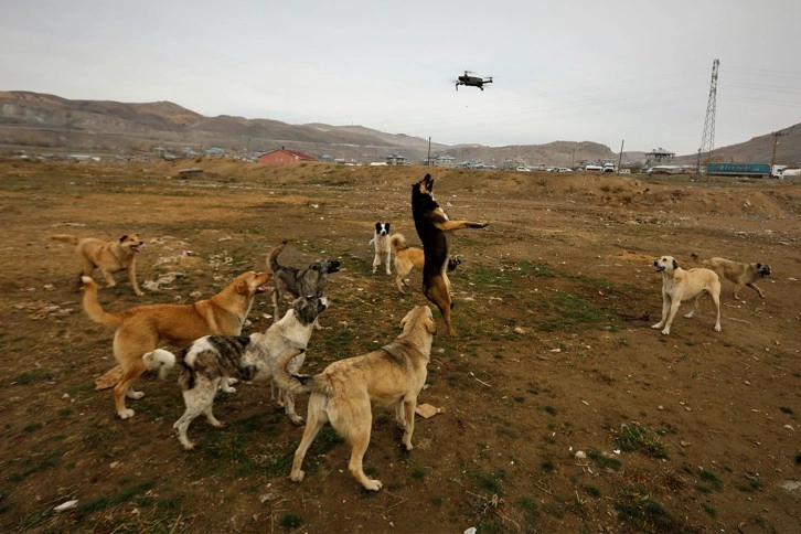 Hayvan besleme etkinliğine katılan Recep Dağ isimli fotoğrafçı, bir süre havada çekim yaptıktan sonra yere indirmeye çalıştığı drone cihazı, köpeklerin ilgisini çekti. Drone cihazına yetişebilmek için havaya zıplayan ve cihaza saldırmaya çalışan köpeklerin ilginç görüntüleri ise kayıt altına alındı.