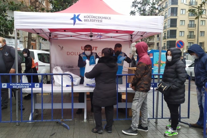 Yılbaşı gecesini evlerinde geçirmek isteyen vatandaşlar için Küçükçekmece Belediyesi, ücretsiz olarak 3 bin 500 gıda paketi dağıttı. Cips, kuruyemiş, kola ve yumurta olan paketleri almak için sıraya giren vatandaşlar stantın önünde uzun kuyruklar oluşturdu.