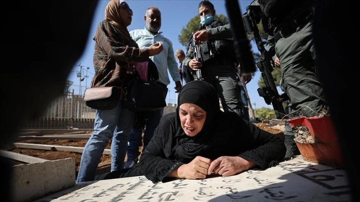 İsrail polisinin zorla oğlunun mezarın başından kaldırmaya çalıştığı Umm Alaa hıçkırıklarla kabire sarılarak, "Beni de buraya, oğlumun yanına gömün." diye feryat etti.