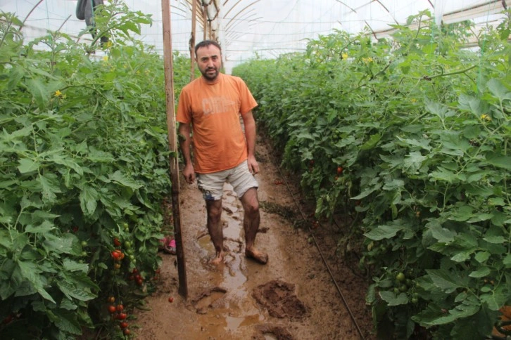 Büyük üzüntü yaşayan Tülü, “Dün gece yoğun bir gece yaşadık. Felaket geldi, sel oldu. Buraya ortağım. Dere taşınca su seramıza doldu. Yan taraftaki serada yıkıldı. Bu bölgeye baya bir darbe oldu. Eylülde diktiğim domates kötü oldu, geçen yılda aynısını yaşamıştım” dedi.