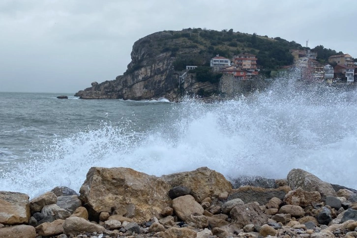 Karadeniz'de etkili olan fırtına nedeniyle Bartın'ın Amasra ilçesinde Küçük Liman mevkiinde kayalıklara vuran dalgaların boyları 3 metreye ulaştı.