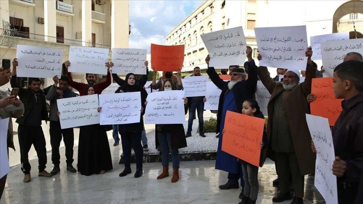 Sivil toplum örgütlerinin çağrısıyla düzenlenen eyleme katılan Libyalılar üzerinde "seçimlerin ertelenmesine hayır" ve "seçim sonuçlarını kabul etmelisiniz" yazılı dövizler taşıdı.