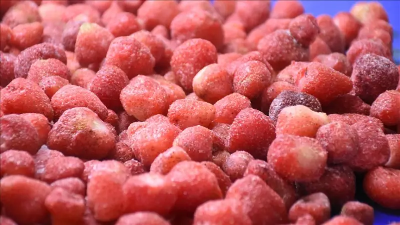 .w3-content { max-width: 100%; margin: auto;} .w3-tooltip, .w3-display-container {position: relative;} .w3-black, .w3-hover-black:hover { color: #fff!important; background-color: #000!important;} .w3-display-left { position: absolute; top: 50%; left: 0%; transform: translate(0%,-50%);-ms-transform: translate(-0%,-50%);} .w3-display-right { position: absolute; top: 50%; right: 0%; transform: translate(0%,-50%);-ms-transform: translate(0%,-50%);} .w3-btn, .w3-button {-webkit-touch-callout: none;-webkit-user-select: none; -khtml-user-select: none;-moz-user-select: none; -ms-user-select: none;user-select: none;} .w3-btn, .w3-button {border: none;display: inline-block;outline: 0;padding: 8px 16px;vertical-align: middle;overflow: hidden;text-decoration: none;color: inherit;background-color: inherit;text-align: center;cursor: pointer;white-space: nowrap;}Dünya kuru kayısı üretiminin yüzde 85'inin yapıldığı Malatya'da, girişimci Ömer Memur'un Tarım ve Kırsal Kalkınmayı Destekleme Kurumu (TKDK) desteğiyle kurduğu fabrikada işlediği dondurulmuş çilekler, Avrupa ülkeleri ile ABD'ye gönderiliyor.
