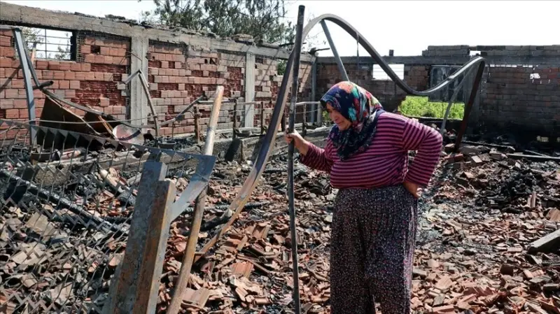 Şeref Arslan ise dün, oğlu ile eşinin akşam yemeği için çiftlikten bir süreliğine ayrıldığını bu sırada yangının çıktığını belirterek, "Yangın esnasında ovada kuruttuğumuz üzümleri sergiden kaldırıyorduk. İhbar geldi, çiftliğe ulaştık ama her yer yanmıştı. Hayvanlar, tarım aletleri, bütün malzeme tamamen yandı. 3 dana, köpekler var, 10 koyunum var telef olan. Bunun yanında 1 odalı evimiz vardı. O da yanmış, kül olmuş. Hayvanlarımızın bir kısmını kurtarabildik." dedi.