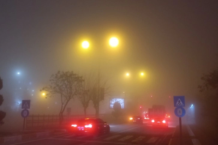 Mardin'de akşam saatlerinde sisin çökmesi ile trafikte sürücüler zor anlar yaşadı.