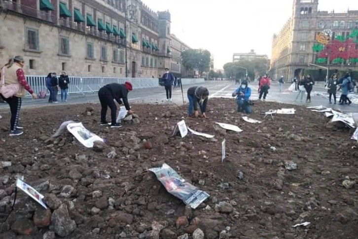 Meksika'nın başkenti Mexico City'de kayıp kişilerin yakınları, Başkanlık Sarayı'nın önünde toplandı. Devlet Başkanı Andres Manuel Lopez Obrador'dan yakınlarının bulunmasını isteyen göstericiler, Başkanlık Sarayı'nın önüne kamyonla getirdikleri toprağı dökerek, yakınlarının fotoğraflarını ve eşyalarını toprağın üzerine yerleştirip temsili mezarlar kurdu. Protestocular ellerindeki pankartlara ise, “Başkan Lopez Obrador mezarları ziyarete gelmezse mezarlar onu görmeye gelir” yazdı.