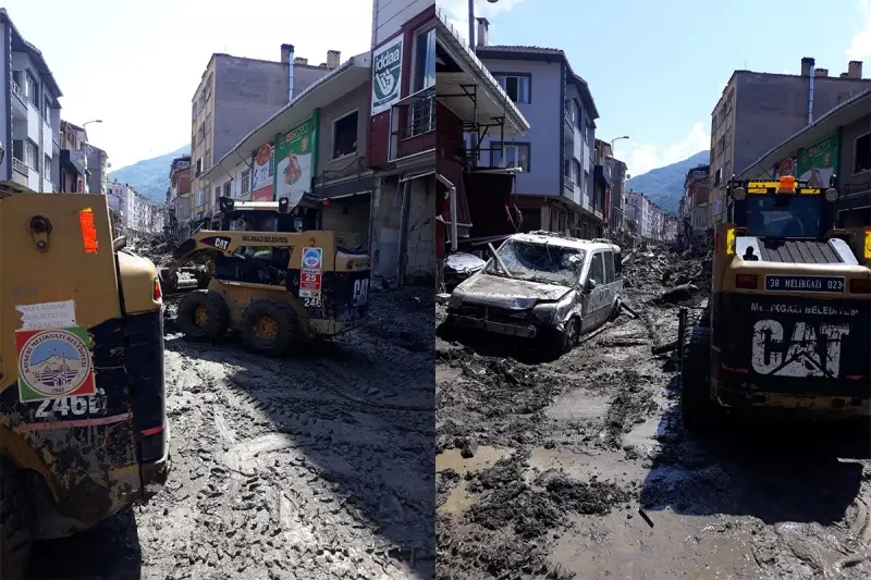 Melikgazi Belediyesi Park ve Bahçeler Müdürlüğü'ne bağlı ekiplerin iş makinaları ile afet bölgesinde çalışmalara destek olduğunu söyleyen Melikgazi Belediye Başkanı Mustafa Palancıoğlu, "Kastamonu, Bartın ve Sinop'ta kuvvetli sağanak yağış sonrası maalesef sel felaketine maruz kaldı. Birçok vatandaşımız hayatını kaybetti. İlde maddi anlamda birçok hasara neden oldu. Afetten etkilenen bölgelerdeki çalışmaların kesintisiz olarak yürütülmesi amacıyla, AFAD Başkanlığı Afet ve Acil Durum Yönetimi Merkezi çalışmalarını ilk günden beri sürdürüyor. Bizde Melikgazi Belediyesi olarak elimizden gelen katkıyu sunuyor. Sunmaya da devam edeceğiz. Yaralarımızı birlikte sarıyoruz. Yaşanan sel felaketi nedeniyle Melikgazi Belediyesi Park ve Bahçeler Müdürlüğü'ne bağlı ekiplerimiz, Kastamonu'da sürdürülen çalışmalara iş makinaları ile katıldılar. Tüm zorlukları omuz omuza vererek aştık. Bu zorluğu da hep birlikte aşacağız inşallah" dedi.