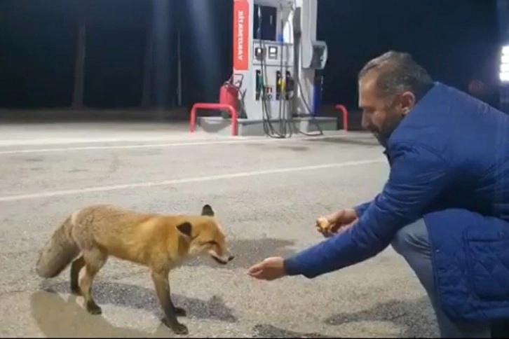 Çalhanoğlu, "Konursu köyünde bulunan akaryakıt istasyonunda tilkimizle karşılaştık. Acıktıkça buraya geliyor ve elimizle besliyoruz. O bizim neşemiz, çok güzel bir hayvan" dedi.