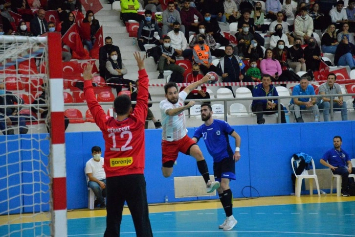 Çekişmeli geçen ikinci yarıda farkı 4 sayıya kadar çıkartan A Milli Erkek Hentbol Takımı, 25-23'lük skorla karşılaşmayı kazandı.