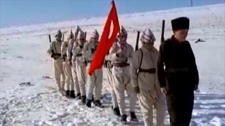 İlçeye bağlı Beşçatak Köyü İmam Hatip Ortaokulu öğrencileri kar üzerinde Sarıkamış Harekatını canlandırdı.