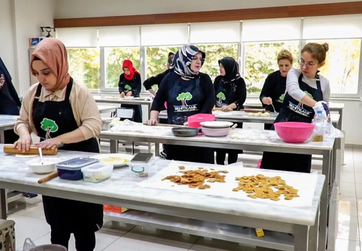 Şehitkamilli kadınlar, pasta yapımındaki püf noktaları kendileri için açılan pastacılık kursunda öğreniyor.