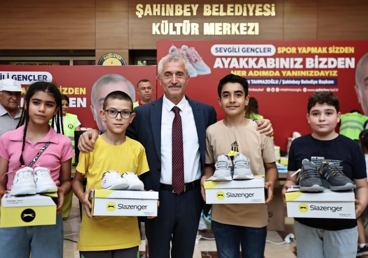 Her yıl öğrencilere spor ayakkabısı hediye eden Şahinbey Belediye Başkanı Mehmet Tahmazoğlu bu yıl da Şahinbey Belediyesi Kültür Merkezi’nde öğrencilerle bir araya gelerek hediyelerini verdi. Öğrencilere karne hediyesi olarak spor ayakkabısı hediye eden Başkan Mehmet Tahmazoğlu bu yıl 180.000 öğrenciye daha spor ayakkabısı hediye ederken gençlere bugüne kadar toplamda 1.268.000 adet spor ayakkabısı hediye etmiş olacak.