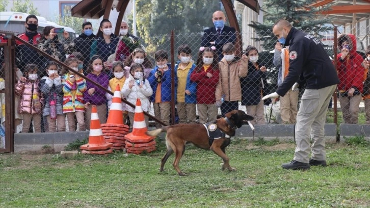 Daha sonra, Narkotik Suçlarla Mücadele Şube Müdürlüğü ekipleri, narkotik köpeği Sezar ile gösteri yaptı. Öğrenciler, Sezar'ı sevebilmek için adeta birbirleriyle yarıştı.
