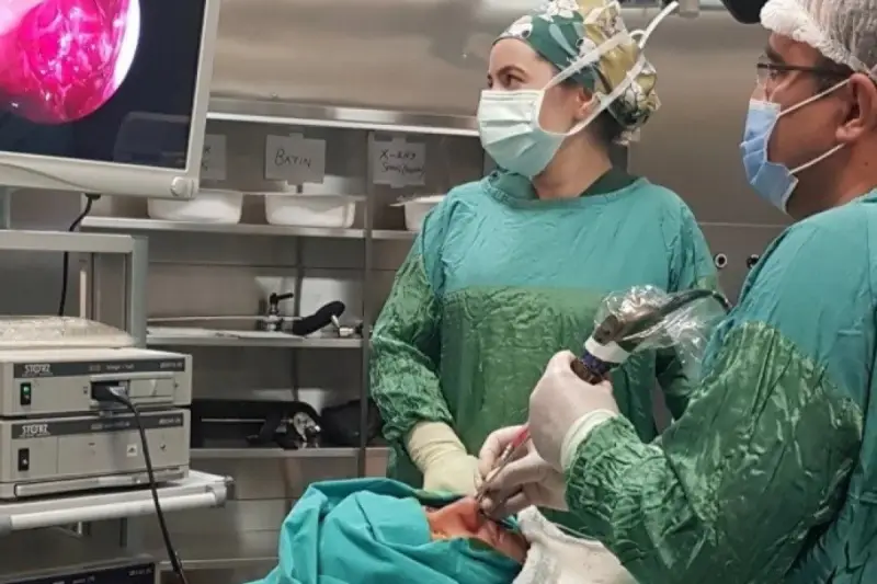 Doç. Dr. Adnan Ekinci, “Vücudun her yerinde tümör görüleceği gibi nadiren de burun içerisinde kanser hücresine rastlanabiliyor. Bize de böyle bir hasta geldi Sivas içerisinden. Hasta da tek taraflı burun tıkanıklığı, burun kanaması ve özellikle ağrı şikayetiyle geldi. Bu tür hastalarda öncelikle detaylı bir burun muayenesi yapmak gerekiyor. Gerekli görüntüleme yöntemi, endoskopi, tomografi, MR çektikten sonra biz bu hastaya burun tümörü tanısını koyduk. Ameliyattan önce biyopsi yapılması gerekiyor öncelikle. Yaptığımız biyopside İnverted Papilloma dediğimiz iyi huylu ama nadiren de kötü huylu kansere dönüşebilen yaklaşık bir 10 santim uzunluğunda bir kitle tespit ettik. Hastamızı da endoskopik yöntemle burun dışında herhangi bir kesi yapmadan direk kamera ile kapalı yöntemle ameliyat ederek hastamızı bu şikayetinden kurtardık ''dedi.