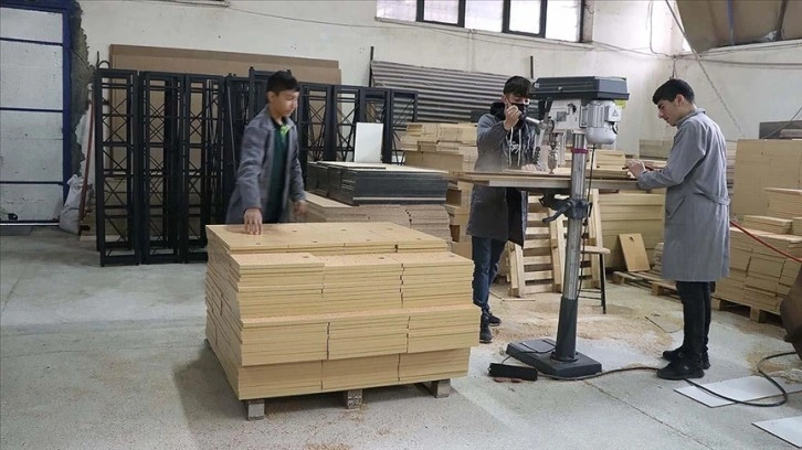 Lisenin Mobilya İç Tasarım Alan Şefi Yusuf Şahin, AA muhabirine, meslek lisesi olarak kentte kütüphanesi olmayan okulların malzemelerini ürettiklerini söyledi.