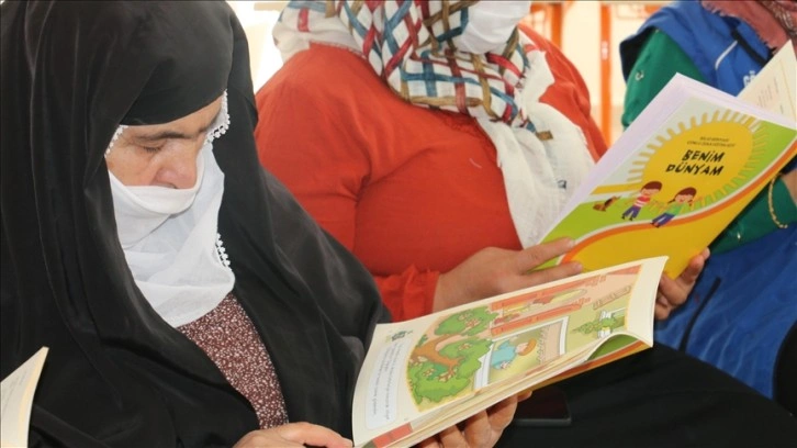 Adıyaman'ın Kahta ilçesinde, okuma-yazma öğrenen 75 yaşındaki Ayten Gül, farkındalık oluşturmak için çocukları yaşındaki kursiyer arkadaşlarıyla kitap okuma etkinliklerine katılıyor.